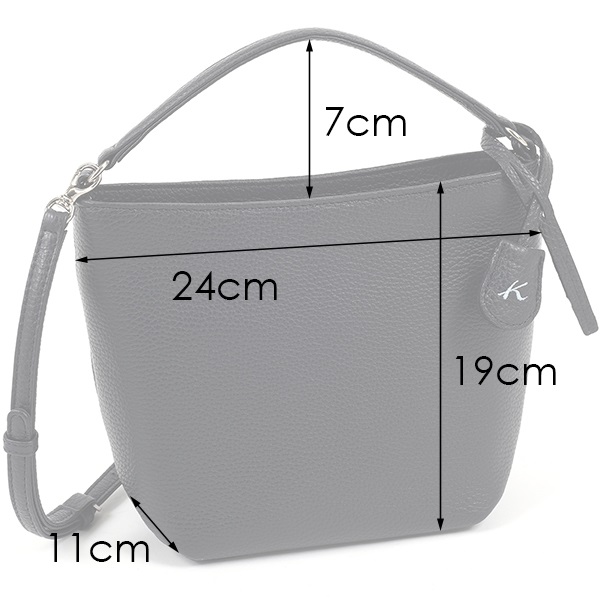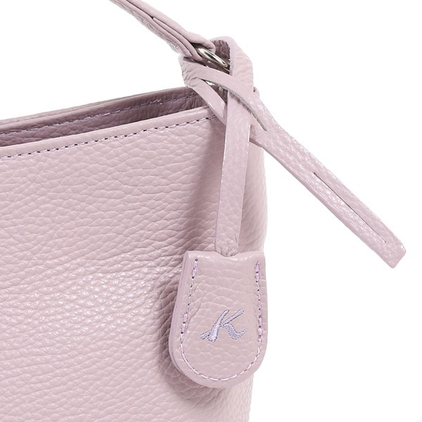 軽くてやわらかいシュリンクレザーの2wayハンドバッグ。着脱できるショルダーベルトが付属し、斜め掛けでもお使いいただけます。Kマーク刺繍の入ったチャーム風キーリングは取り外し可能。内装ポケットに付いているDカンにも取り付けられます。背面側には、スマホやハンカチなど取り出す機会の多い小物の収納に便利な外ポケットが付いています。