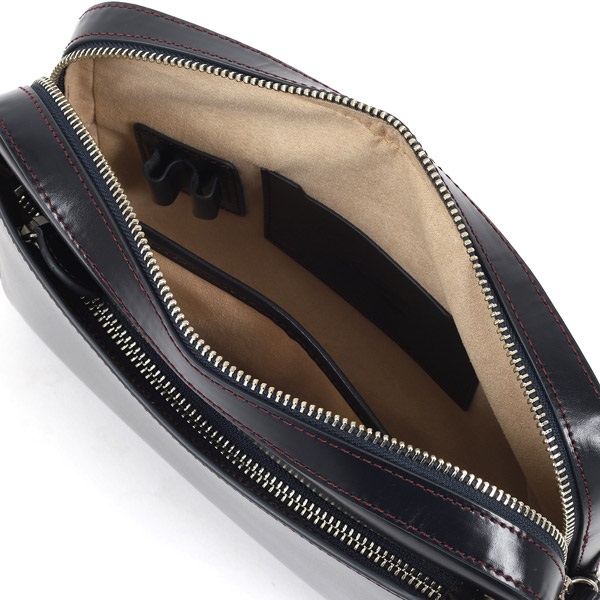 上質なヌメ革を使用した2wayショルダーバッグ。オールレザーの贅沢なつくりで、ショルダーベルトを外せばクラッチバッグとしてパーティーシーンなどにも活躍する、汎用性の高いデザインです。外側にファスナーポケットが付いており、スマホやパスケースなど小物の収納に便利です。
