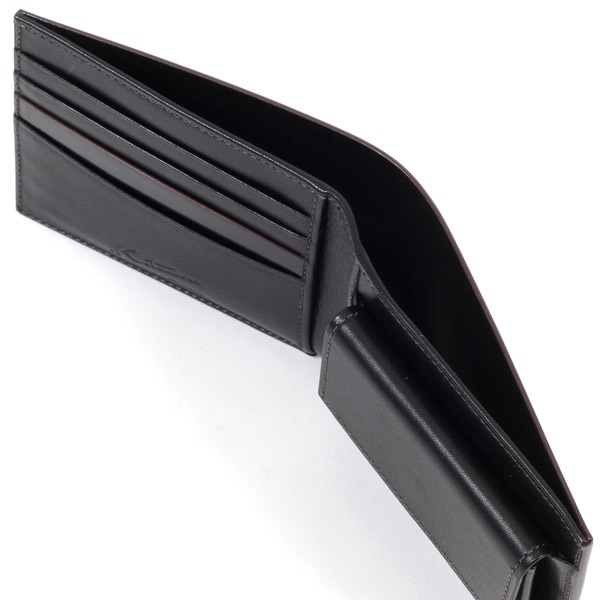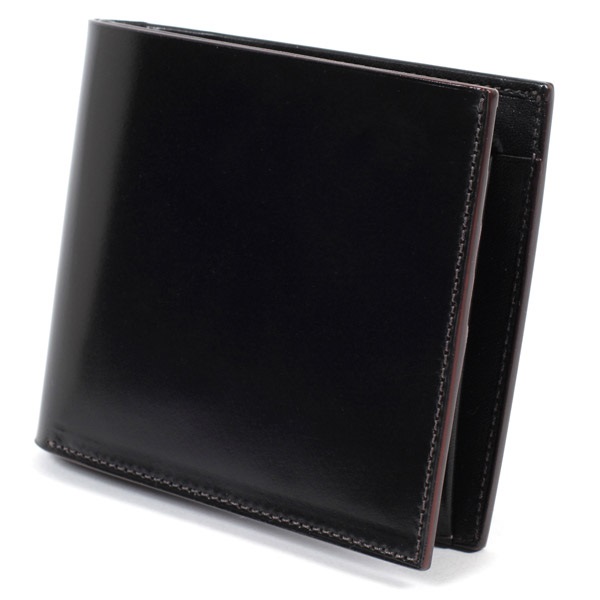 発色の美しいイタリア製コードバンを使用した二折財布。きめが細かく高級感のある表面感と、耐久性に優れ型崩れしにくいのが特徴です。表面を美しく仕上げるためグレージングを施し、上品なツヤを演出しました。また、内部にしっかりオイルを浸透させ、折り曲げに対する耐久性を高めています。内側には耐久性がありキズに強い牛革を使用。小さいバッグでもかさばらないスリムなデザインもポイントです。