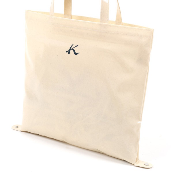 シンプルなデザインと使い勝手の良さで人気のショッピングバッグ。口元はファスナーでしっかり閉じることができます。底部のホックを外すと薄マチのバッグとしても使える2wayタイプ。ホックを外した状態で、A4バインダーが横にぴったり入ります。ビニール素材なので、水滴や軽い汚れの拭き取りができるのもポイントです。