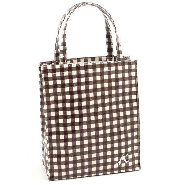 シンプルなデザインと使い勝手の良さで人気のショッピングバッグ。ビニールコーティングされており、水滴や軽い汚れの拭き取りができ便利です。カラーバリエーションに加え、ギンガムチェック、ストライプ、ドットと柄も豊富で選ぶ楽しさも。底板付きで型崩れしにくく、安定感があるのも嬉しいポイント。すっきりと持てる縦長タイプで、サブバッグやランチバッグにぴったりです。