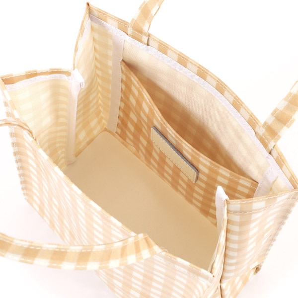 シンプルなデザインと使い勝手の良さで人気のショッピングバッグ。ビニールコーティングされており、水滴や軽い汚れの拭き取りができ便利です。カラーバリエーションに加え、ギンガムチェック、ストライプ、ドットと柄も豊富で選ぶ楽しさも。底板付きで型崩れしにくく、安定感があるのも嬉しいポイント。すっきりと持てる縦長タイプで、サブバッグやランチバッグにぴったりです。