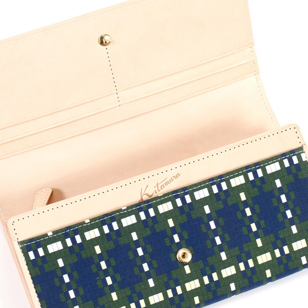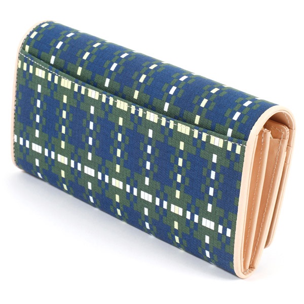 細やかなメッシュ風プリントのキャンバス生地を使用した長財布。縁取りや内装にはヌメ革を使用しており、使うほどに色の深みが増していく経年変化が楽しめます。収納力に優れ、合計16枚のカードが収納可能。小銭入れは大きく開いて見やすいL字ファスナータイプです。