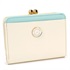ツヤとハリのある牛革でお作りした二折財布。すっきりとしたフォルムが上品な印象です。「KITAMURA MOTOMACHI」の文字に囲まれたKマークの飾りがポイント。正面と、カード段の一部にアクセントカラーをプラスしました。手のひらに収まるコンパクトなサイズ感。がま口タイプの小銭入れがチャームポイントです。