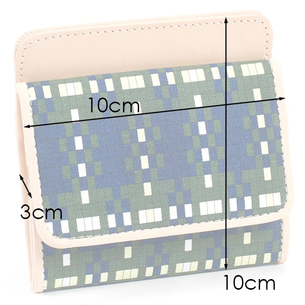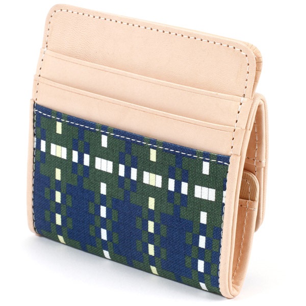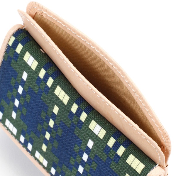 細やかなメッシュ風プリントのキャンバス生地を使用した小銭入れ。縁取りや内装にはヌメ革を使用しており、使うほどに色の深みが増していく経年変化が楽しめます。お札を半分に折りたためば中央のポケットに収納可能。カードポケットも付いており、ミニサイズのお財布としてもおすすめです。