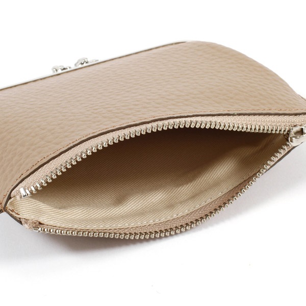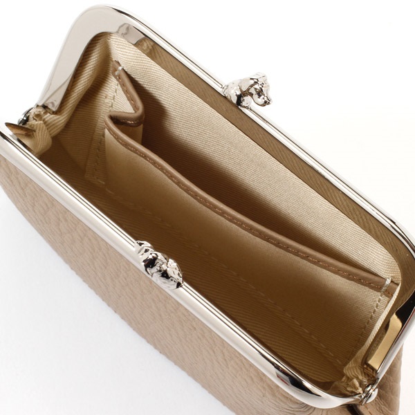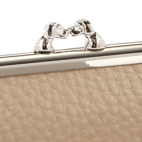 ワンちゃんのシルエットをかたどった口金がポイントの小銭入れ。2匹のワンちゃんが鼻を合わせるように向き合ったデザインは、キタムラオリジナル。ワンちゃんのシルエットだけでなく、目や鼻といったお顔のパーツやふわふわとした毛並みまで表現するこだわりは、ワンちゃんを愛するキタムラだからこそのこだわりが詰まっています。内ポケット付きで、片方には小銭、もう片方にはお札とカードなど、整理整頓できるのが嬉しいポイント。ミニバッグでお出かけする際のお財布としてもおすすめです。
