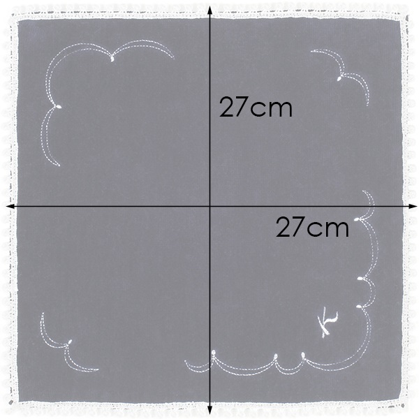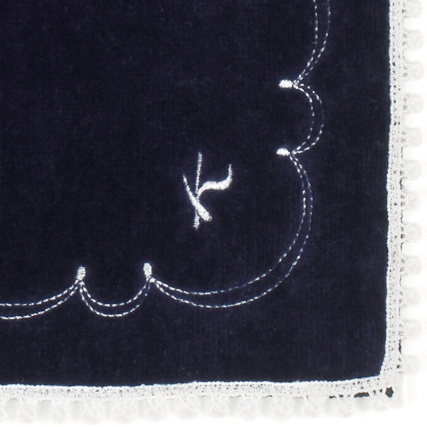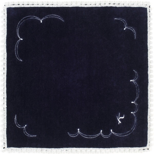 キタムラらしいかわいらしさと上品さを表現したタオルハンカチ。ふちにはレースをあしらい、高級感のある仕上がりです。Kマーク刺繍がワンポイント。ダークブルーとホワイトの落ち着いたカラーコンビでセレモニーシーンにもおすすめです。