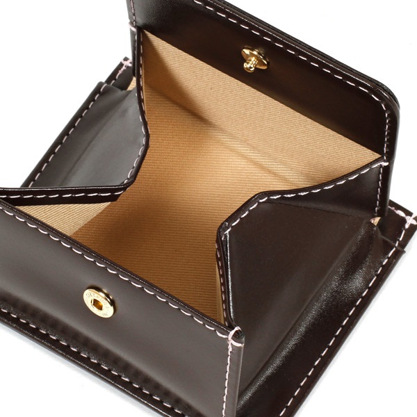 素材: 牛革/裏地 綿仕様:【小銭入れ口開き】スナップボタン【カード段】3【外ポケット】2