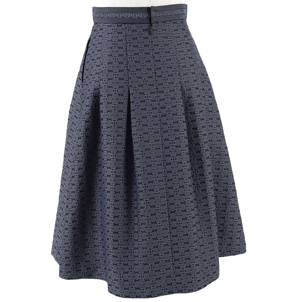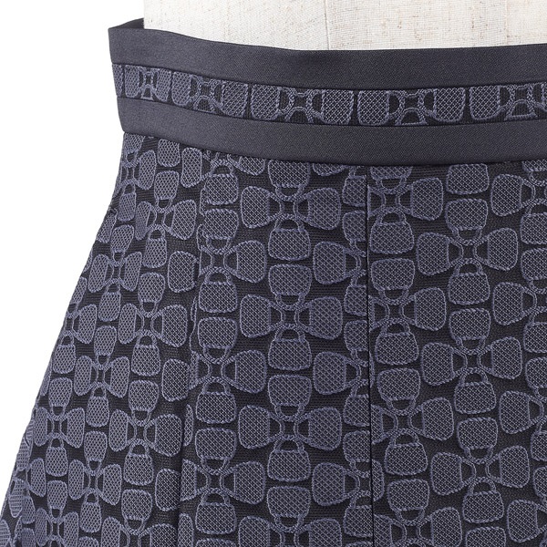 バッグのモチーフをお花に見立てたオリジナル素材がポイントのタックスカート。腰回りはすっきりと、裾にかけて立体感のあるシルエットに仕上げました。ウエストベルトにあしらった無地の別布がさり気ないアクセントになっています。軽量でシワになりにくく、お手入れしやすいのもポイント。膝が隠れる上品な丈感で、オケージョンやビジネス、デイリーまで幅広くお使いいただけます。同素材のスカート(KH0824)とのセットアップもおすすめです。