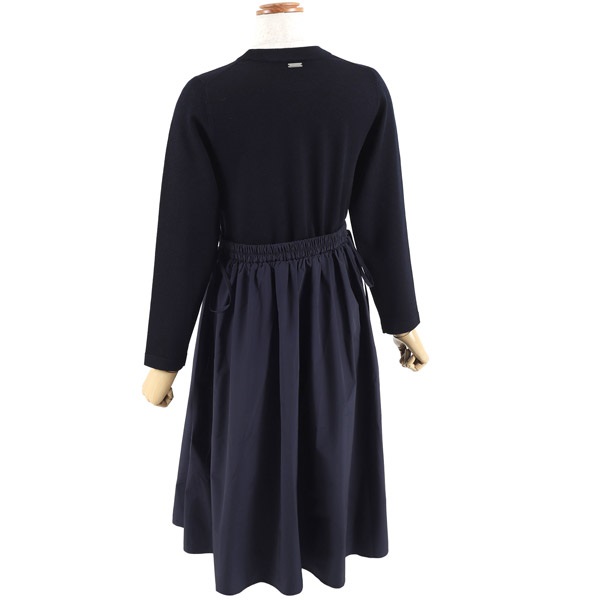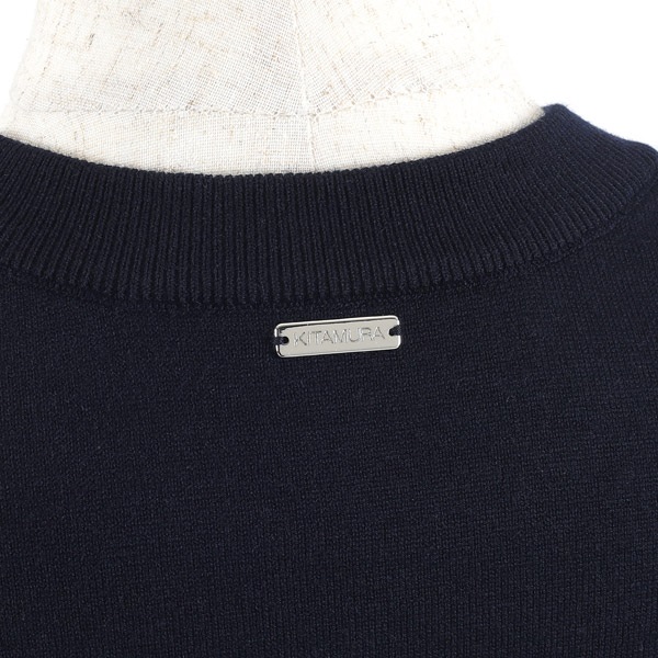 ウエスト部分にたっぷり入ったギャザーがポイントのニットドッキングワンピース。ウエストはゴム仕様で、リラックス感のある着心地です。さらに、両サイドのリボンでウエストを絞り、シルエットを調節することもできます。膝が隠れるミディ丈で、ニット部分はカジュアルになりすぎないよう、程よくフィットするサイズ感に仕上げました。背中側の首元にあしらったKITAMURAロゴプレートがきらりと光るワンポイントに。一枚で異素材を組み合わせたメリハリのある着こなしが楽しめます。