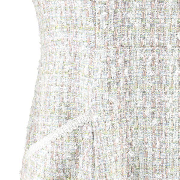 色とりどりの意匠糸を複雑に織り交ぜた、華やかで立体感のある素材。やわらかく、軽やかな印象です。