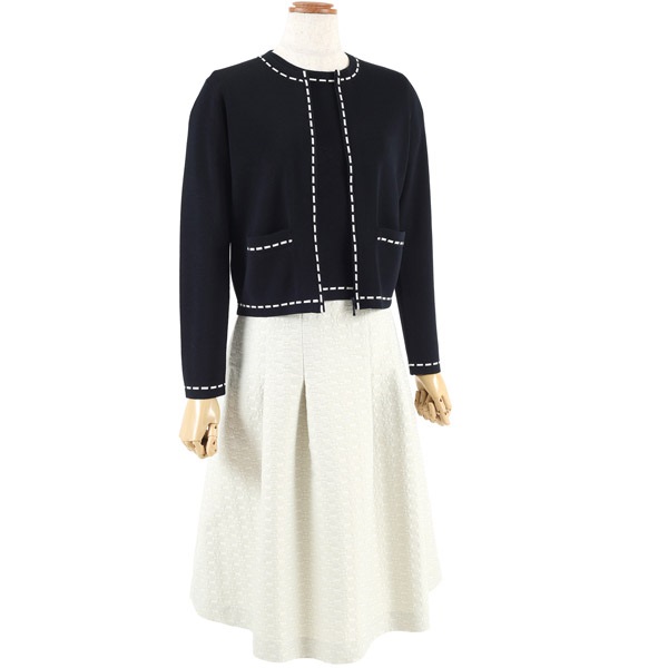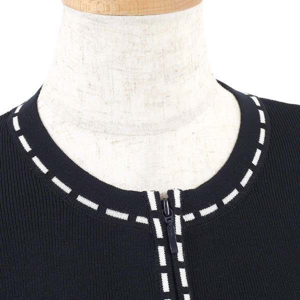 首元や裾、袖口などに施したステッチ風デザインがポイントのニットカーディガン。着回ししやすいシンプルなデザインに、配色のステッチデザインがアクセントになっています。ジップアップデザインで程よいカジュアル感ありながら、上品な印象に仕上げました。ショート丈のコンパクトなシルエットで、羽織としてはもちろん、一枚での着用もおすすめ。配色プルオーバー(KH0841)とのアンサンブルでの着用も可能です。