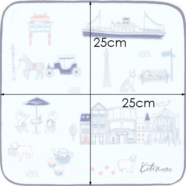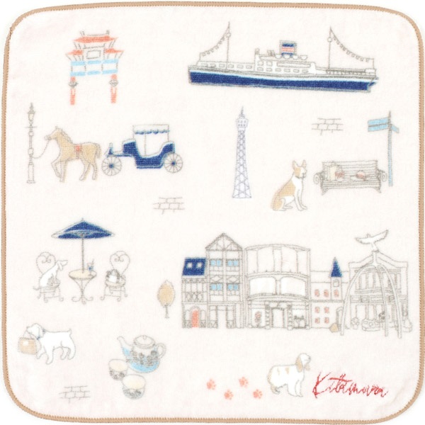 横浜らしさあふれるモチーフ柄をちりばめたタオルハンカチ。元町ショッピングストリートをはじめ、中華街や山下公園、馬車道などおなじみの風景のランドマークを可愛らしいタッチのイラストで表現しました。ちょっとしたプレゼントにもおすすめです。