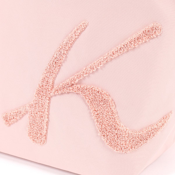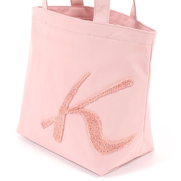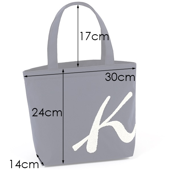 フロントにあしらったサガラ刺繍のKマークが印象的なハンドバッグ。パイル状のふわふわとした立体的な質感が特長です。本体はポリエステル素材を使用しており、軽量なのも嬉しいポイント。長財布や折りたたみ傘がゆったり入るサイズ感で、メインバッグはもちろん、サブバッグにもおすすめ。口元はファスナーでしっかり閉じることができ、安心してお使いいただけます。