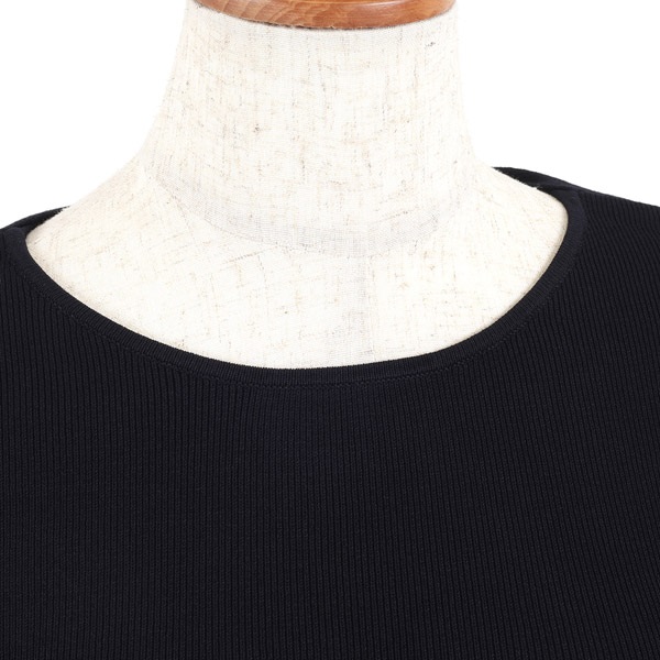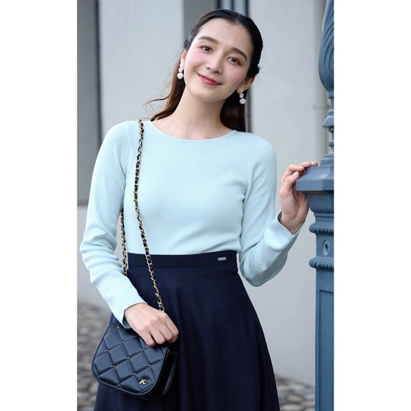 背中の大きなリボンデザインがポイントのボートネックニット。首回りの上品な肌見せがフェミニンな印象です。甘くなりすぎないよう前身頃はシンプルに仕上げており、前後で印象の違いをお楽しみいただけます。身体にフィットするシルエットで、ボトムスにインする際もすっきりと着用できます。