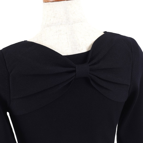 • バックリボンボートネックニット(ブラック-M(38))