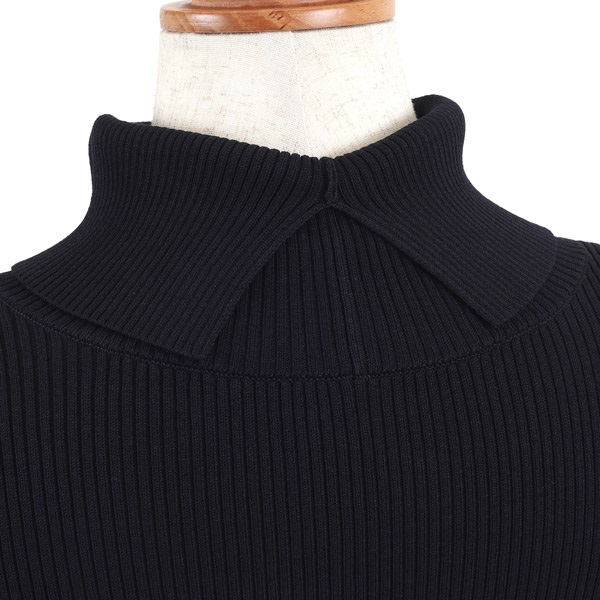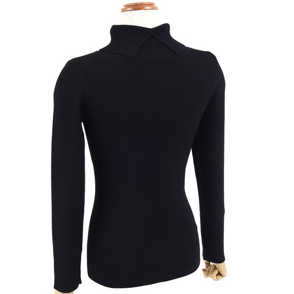 デイリーからビジネスシーンまで、幅広くお使いいただけるシンプルなタートルネックニット。前後で着用できる2wayタイプで、カットが入った方を前に着ると、襟付きニット風の着こなしが楽しめます。襟元も高すぎず、折り返した際も首がすっきりと見えるデザイン。リブ編みなので、身体のラインをすっきりと見せてくれるのもポイントです。