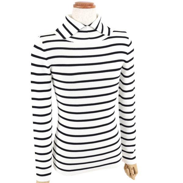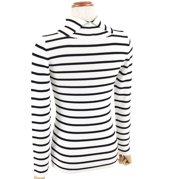 2wayタートルネックニット(ホワイト(ボーダー)-M(38))