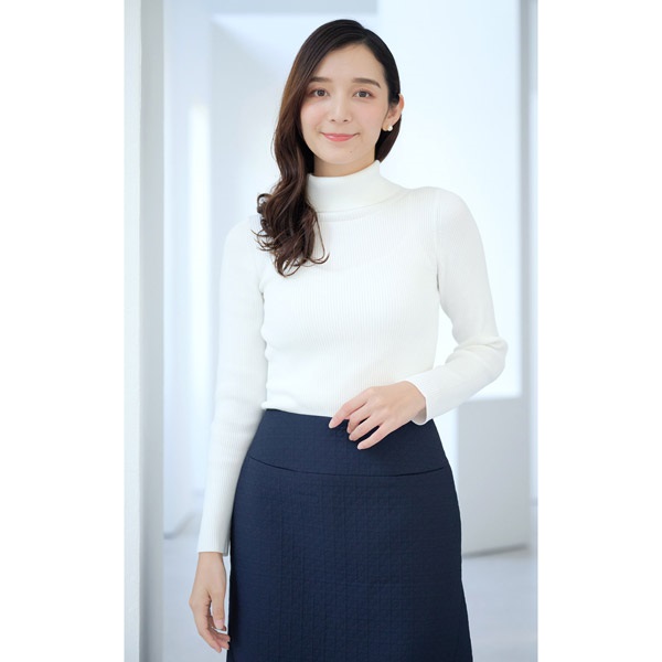 デイリーからビジネスシーンまで、幅広くお使いいただけるシンプルなタートルネックニット。前後で着用できる2wayタイプで、カットが入った方を前に着ると、襟付きニット風の着こなしが楽しめます。襟元も高すぎず、折り返した際も首がすっきりと見えるデザイン。リブ編みなので、身体のラインをすっきりと見せてくれるのもポイントです。