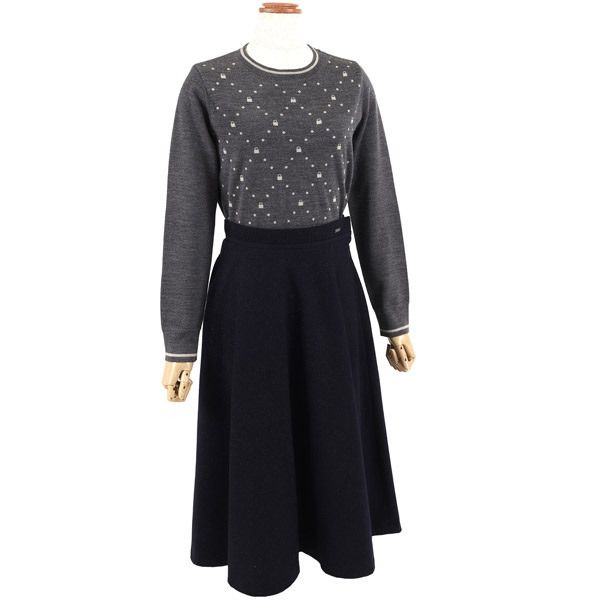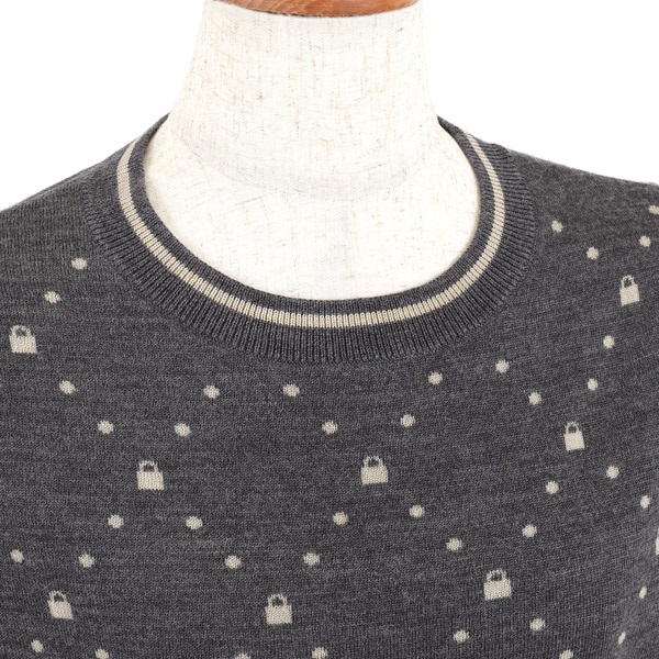 • バッグモチーフクルーネック長袖ニットプルオーバー(グレー-M(38))