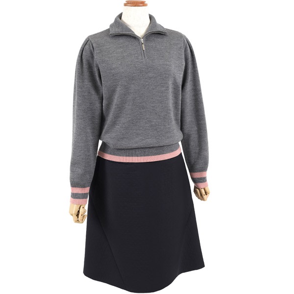 袖口と裾のラインがポイントのシンプルなハーフジップニット。着心地の良いややゆったりとしたシルエットです。肩部分にタックを入れ、さり気ないパフスリーブで可愛らしさをプラスしました。カジュアルすぎず、きれいめな印象で着用していただけます。★素材ポイント肌触りが非常になめらかで、チクチク感が少ないエクストラファインメリノウールを使用。保温性と吸湿性にも優れ、快適な着心地です。