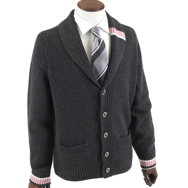 オーセンティックなデザインのショールカラーカーディガン。上質なメリノウールをふんだんに使用した、畔編みで仕上げました。シンプルなデザインに、襟と袖口のラインがアクセントになっています。ボリュームがあり、アウターのように羽織ることもできます。