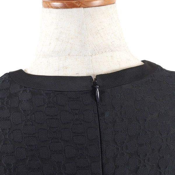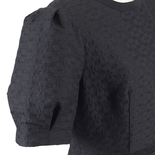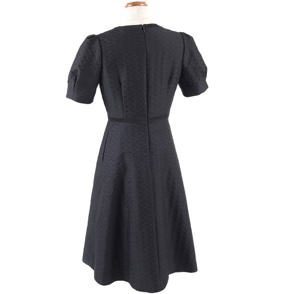 バッグのモチーフをお花に見立てたオリジナル素材がポイントの半袖ワンピース。生地感をいかしたシンプルなフォルムに、パフスリーブやフレアシルエットで可愛らしさをプラス。首元とウエスト部分にあしらった無地の別布でメリハリのあるデザインに仕上げました。高めのウエスト切り替えで、スタイルアップ効果も。スカートは膝が隠れる長さで、ローヒールでもバランス良く着こなせます。ポケット付きで実用性も兼ね備えています。