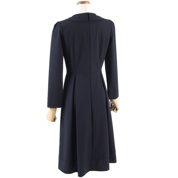 袖口と裾にあしらったコードレースがポイントの襟付き長袖ワンピース。きちんと感を演出してくれる襟付きデザインに、スクエアネックで程よい抜け感をプラスしました。肩にはさり気なくタックを入れ、キタムラらしい可愛らしさをプラス。膝が隠れる上品な丈感で、高めのウエスト切り替えはスタイルアップ効果も。ポケット付きなのも嬉しいポイント。1枚でロングシーズン着用していただけます。