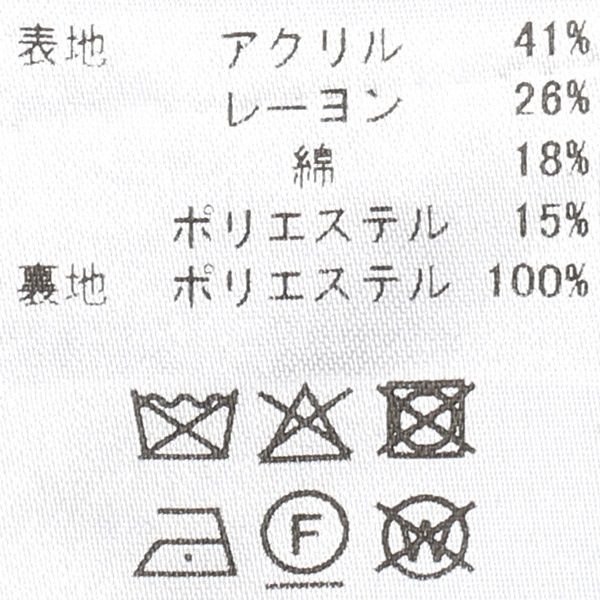 アクリル41%、レーヨン26%、綿18%、ポリエステル15%(ブレード部分 ポリエステル100%)/裏地 ポリエステル100%