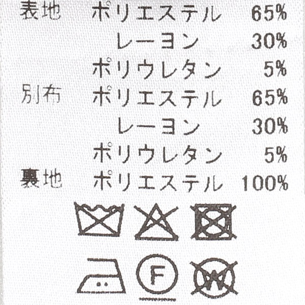 ポリエステル65%、レーヨン30%、ポリウレタン5%(別布 ポリエステル65%、レーヨン30%、ポリウレタン5%)/裏地 ポリエステル100%