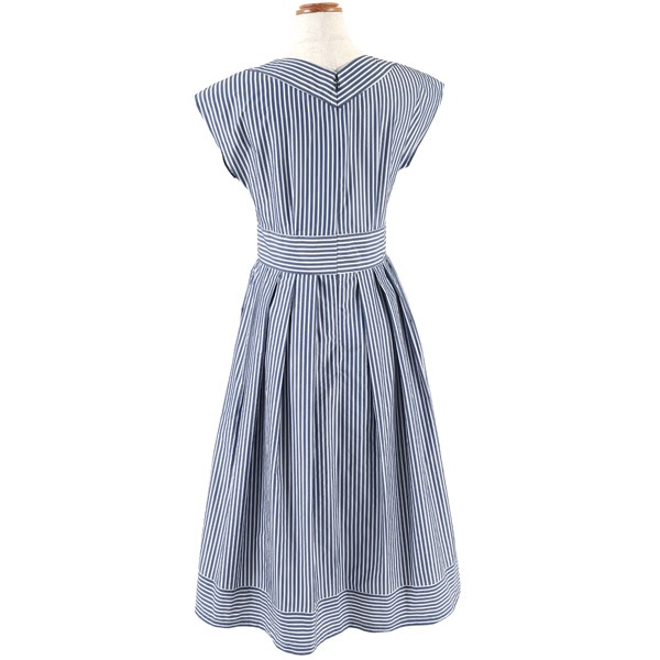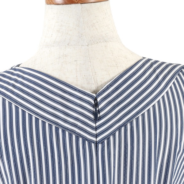 • ドビーストライプVネックワンピース(ダークブルー-S(36))