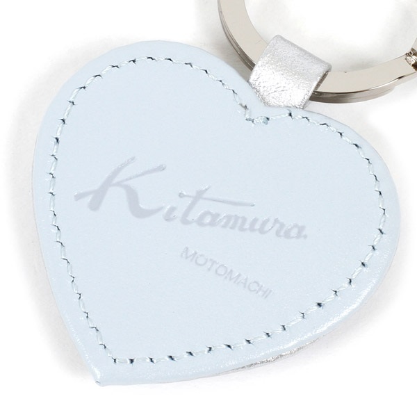 ツヤとハリのある牛革でお作りしたハート型キーホルダー。「KITAMURA MOTOMACHI」の文字に囲まれたKマークの飾りがポイントです。裏表のカラーコンビネーションがポップな仕上がり。プレゼントにもおすすめです。