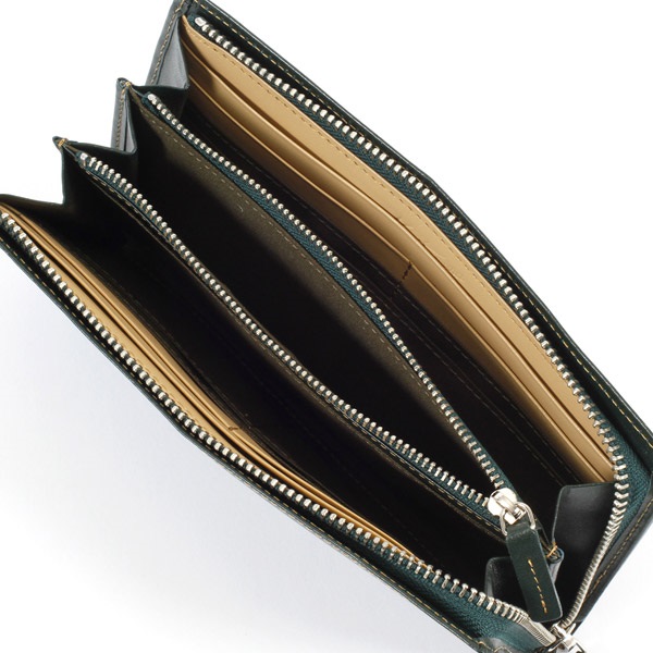 ツヤのあるスムース牛革でお作りした、シンプルなL字ファスナー型長財布。手触りが良く、しっとりとした質感が特徴です。カード段の遊び心ある配色がさりげないオシャレ感をプラス。口開きの良いL字ファスナーは、中身が見やすく、出し入れもスムーズです。