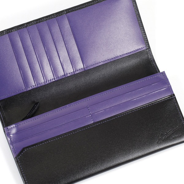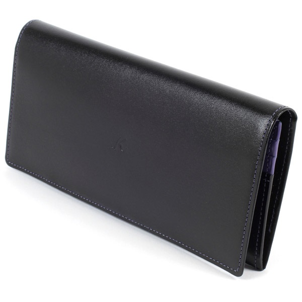 ツヤのあるスムース牛革でお作りした、シンプルなかぶせ型長財布。手触りが良く、しっとりとした質感が特徴です。カード段の遊び心ある配色がさりげないオシャレ感をプラス。薄マチながら収納スペースが充実し、カードもたくさん入ります。レシートやチケットを入れられるポケットも便利です。