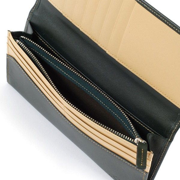 素材: 牛革/裏地 綿仕様:【小銭入れ口開き】ファスナー【カード段】11【内ポケット】3