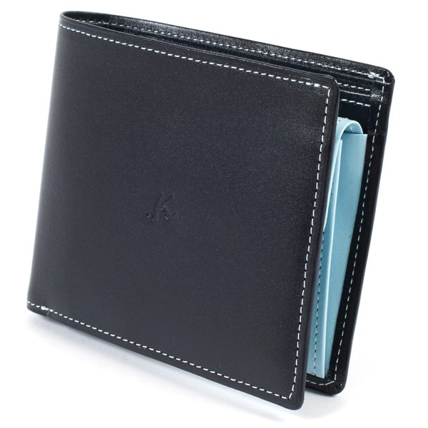 ツヤのあるスムース牛革でお作りした、シンプルな二折財布。手触りが良く、しっとりとした質感が特徴です。カード段と小銭入れの遊び心ある配色がさりげないオシャレ感をプラス。小銭入れは使いやすいかぶせタイプです。