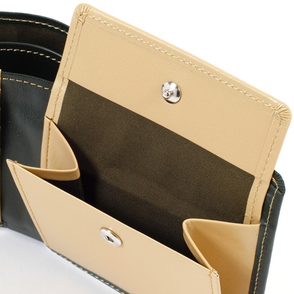 素材: 牛革/裏地 綿仕様:【小銭入れ口開き】スナップボタン【お札入れ仕切り】有り【カード段】4【内ポケット】3