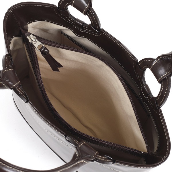 ハンドバッグ(チョコ/ベージュステッチ)