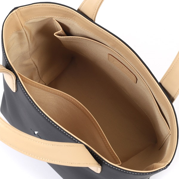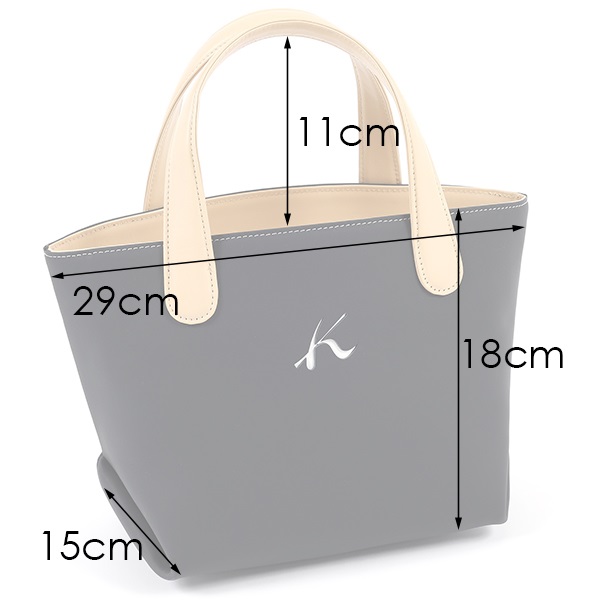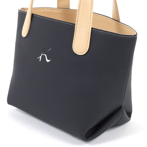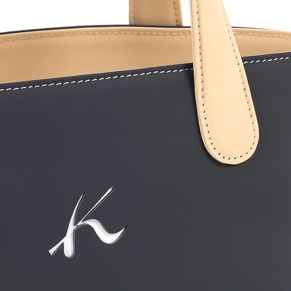 革の素材感をいかしたプレーンなデザインのハンドバッグ。自然環境で育てられた稀少な牛革を贅沢に使用しており、天然素材独特の風合いをお楽しみいただけます。前側にあしらったKマークがアクセント。ベージュカラーの持ち手がナチュラルな魅力を引き立てます。