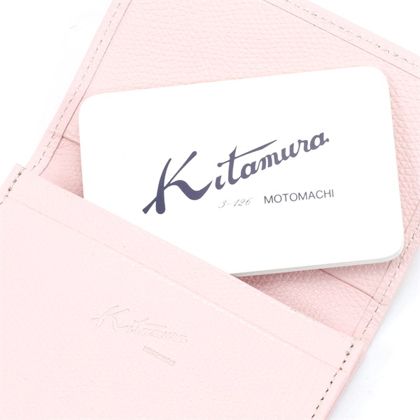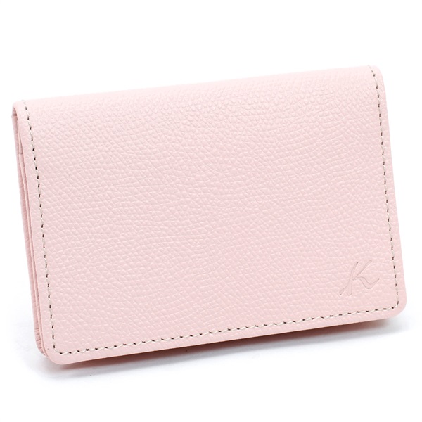 使いやすさが魅力の名刺入れ。キズの目立ちにくい型押し加工を施した牛革素材でお作りしました。かぶせ部分にさりげなくKマークをプラス。シンプルなデザインなので男女兼用でお使いいただけます。