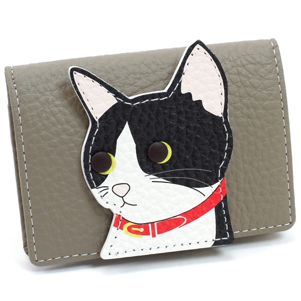 見上げる猫ちゃんのお顔が愛らしい小銭入れ。革くるみのチャーミングな瞳が印象的なデザインです。開きが良く、小銭が取り出しやすいボックスタイプ。背面にはカードポケットが付いており、小銭とカードを一緒に持ち歩けます。