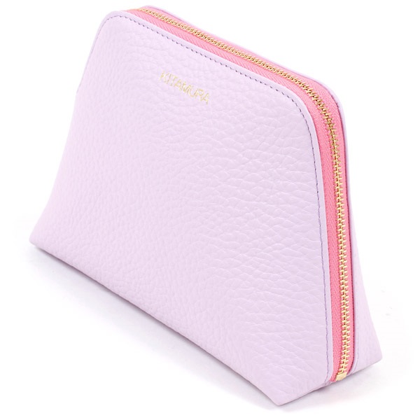 本体とファスナーテープのカラーコンビがポイントの牛革ポーチ。カラーコンビが映えるシンプルなデザインで、前面には箔押しのKITAMURAロゴをあしらいました。やや大きめのサイズ感で、内側には便利な内ポケット付き。