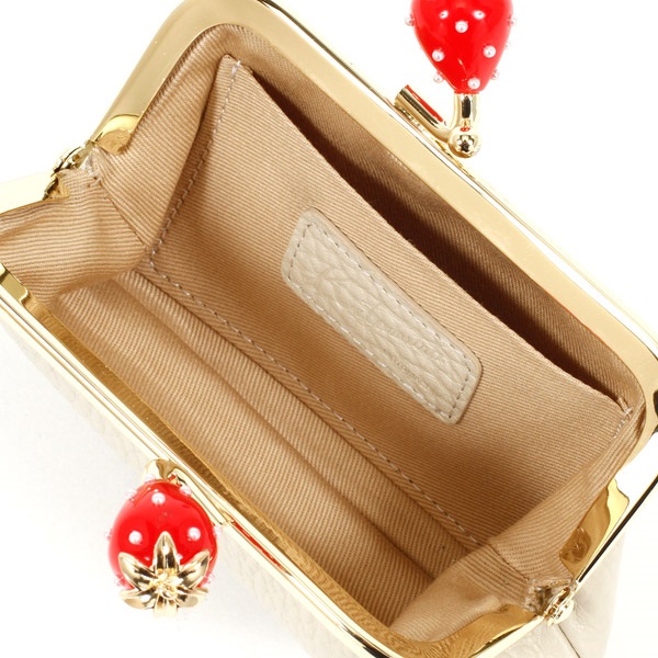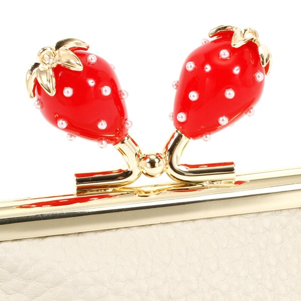 かわいらしさに遊び心が加わった、いちごモチーフの口金がポイントの小銭入れ。ミニバッグにちょうどいいコンパクトなサイズ感。内ポケット付きなので、小銭とお札、カードを分けて収納可能。リップやアクセサリーなどを入れて、ポーチとしてお使いいただくのもおすすめです。