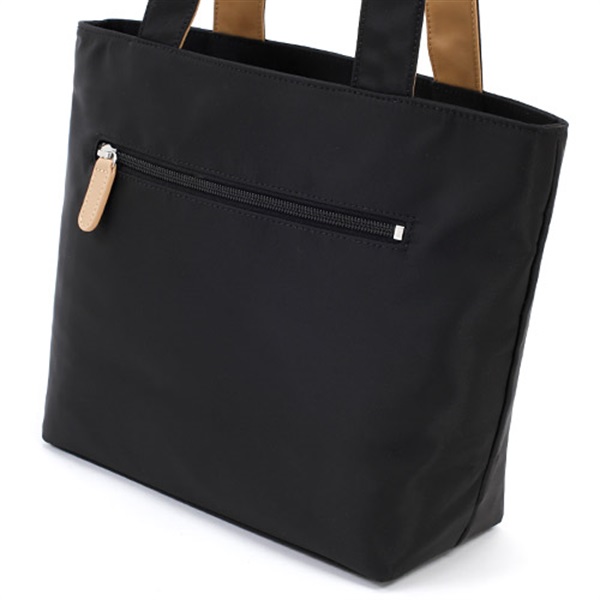ハリのあるナイロン素材にK刺繍をしたシンプルなデザインのトートバッグ。持ち手裏のさり気ないカラーコンビがポイントです。口元はファスナーでしっかり閉じることができ、内・外ポケット付きで収納スペースも充実。B5サイズがゆったり入るサイズ感です。サブバッグとしてもおすすめです。