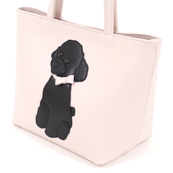 トイプードルのモチーフが愛らしい少し小ぶりな舟形のハンドバッグ。長財布はもちろん、600mlのペットボトルを横にして入れることができます。口元はマグネットタイプなので、お荷物の出し入れも楽々。お出かけやお散歩など、様々なシーンでお使いいただけます。