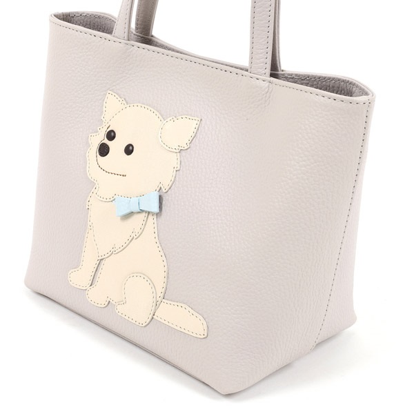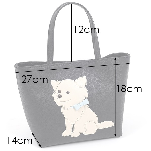 チワワのモチーフが愛らしい少し小ぶりな舟形のハンドバッグ。長財布はもちろん、600mlのペットボトルを横にして入れることができます。口元はマグネットタイプなので、お荷物の出し入れも楽々。お出かけやお散歩など、様々なシーンでお使いいただけます。