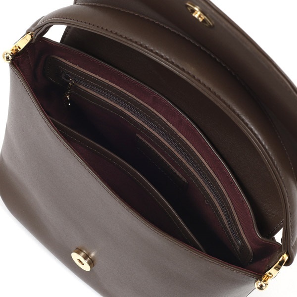 ハーフジップニットは袖口と裾のラインがポイント。肌触りが非常になめらかで、チクチク感が少ないエクストラファインメリノウールを使用しています。保温性と吸湿性にも優れ、快適な着心地です。肩部分にタックを入れ、さり気ないパフスリーブで可愛らしさをプラスしました。カジュアルすぎず、きれいめな印象で着用していただけます。スカートは上質なウール素材を使用。冬らしいロングブーツとのバランスが良いミニ丈で、広がりすぎない台形シルエットに仕上げました。2wayハンドバッグはツヤの質感が上品な牛革製。着脱可能なショルダーベルト付きで、斜め掛けでもお使いいただけます。背面側にはポケットがあり、パスケースやスマホなど出し入れの多い小物の収納に便利。小ぶりな見た目ですが、長財布も入ります。