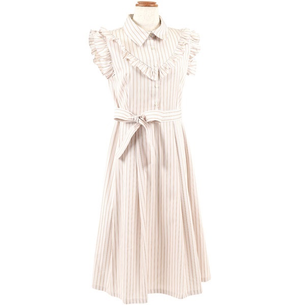 コーディネートで楽しめるお洋服とバッグの福袋。フリルがポイントのノースリーブシャツワンピースと、キャンバス地ハンドバッグの2点セットです。