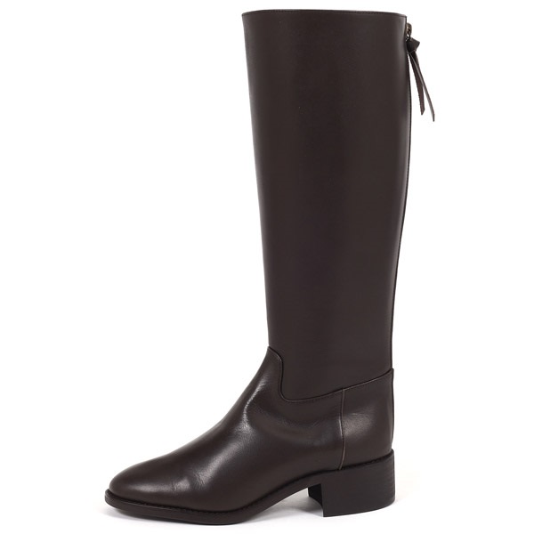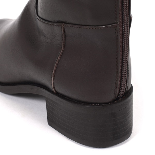 コーディネートに合わせやすいシンプルな牛革ロングブーツ。筒回りは脚に添う細身のサイズ感ですっきりとさせ、さらにファスナーを後ろ側にすることで美しいシルエットに仕上げました。ファスナーの引っ張りにも牛革を使用しています。やわらかく軽量で、履き心地の良さも魅力です。