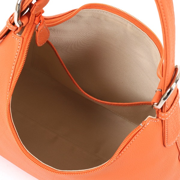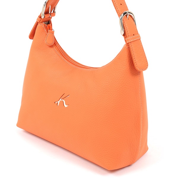 抜き型のKマークがポイントのセミショルダーバッグ。キズの目立ちにくいシュリンク加工を施した牛革を使用しています。マチがしっかりあり、厚めのポーチやお財布もしっかり収納できます。お洋服や気分に合わせて、持ち手の長さは3段階で調節できます。